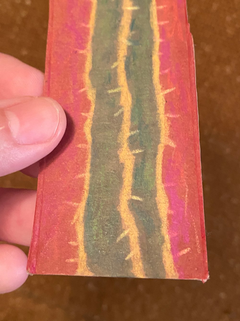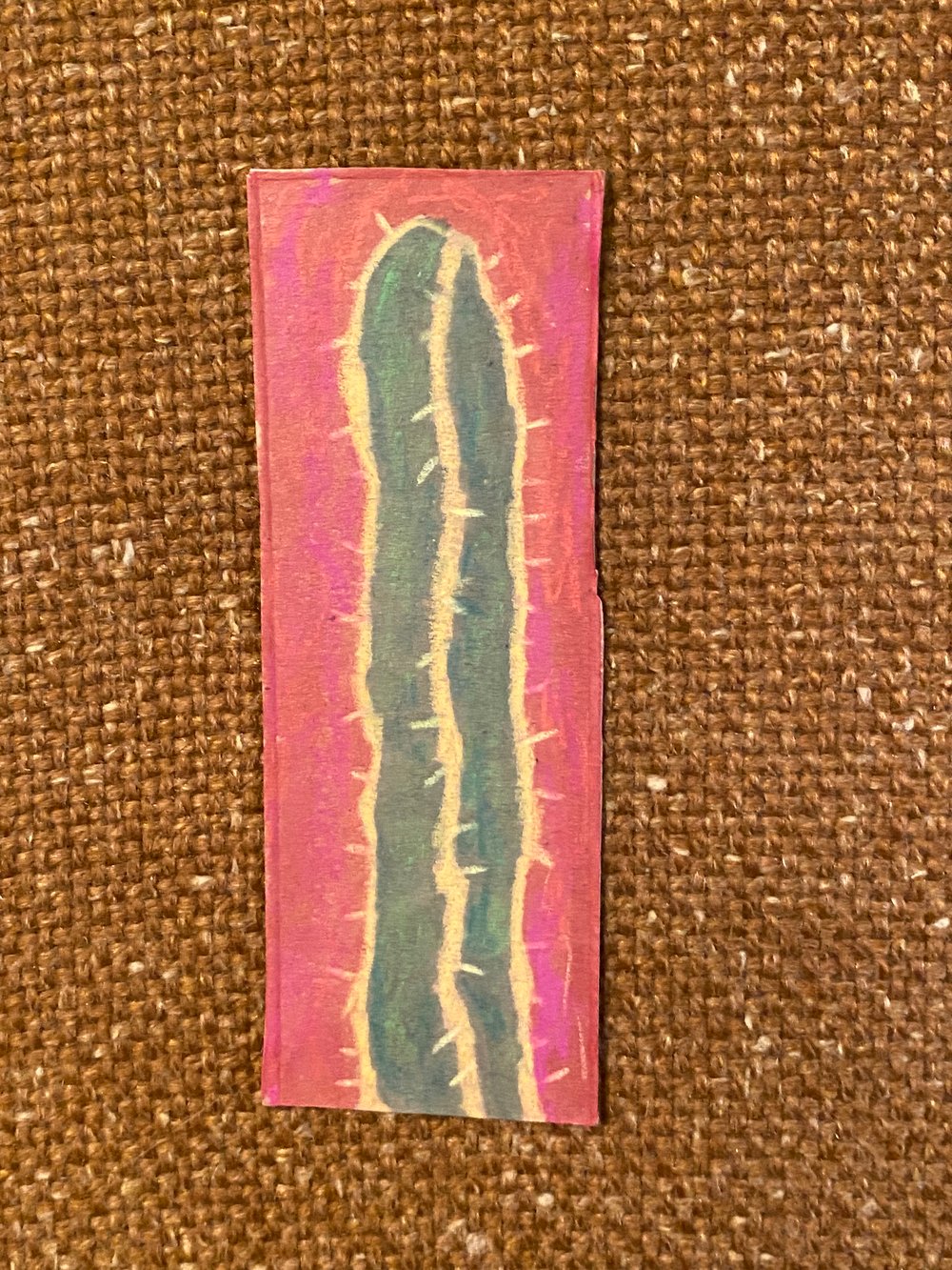 This is a small cactus! Maybe it’s a euphorbia? I can’t remember what I was sketching. Anyway, it’s recycled cardboard and mixed media.