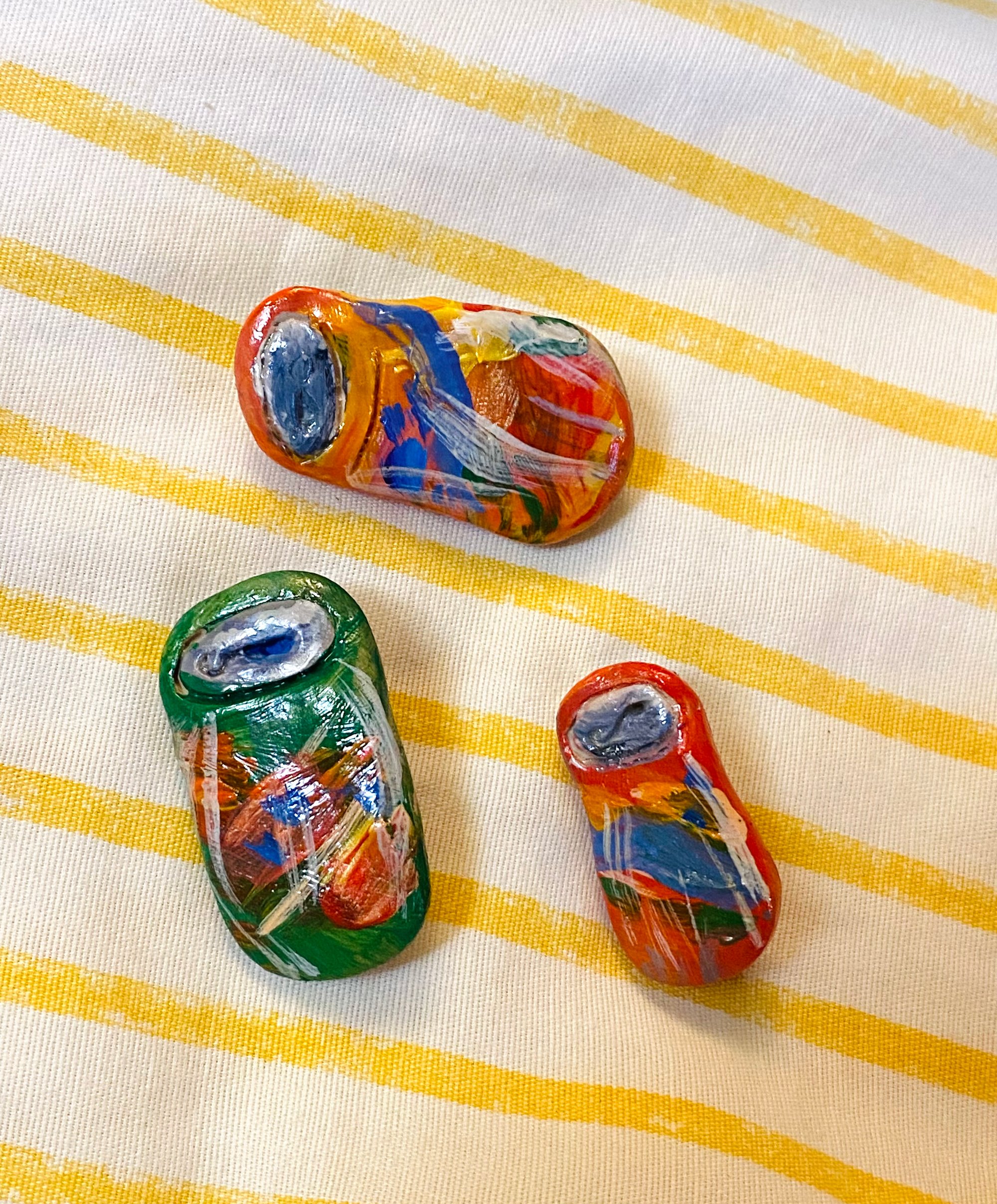 Announce your loyalty to the sparkle water with these handmade clay pins.